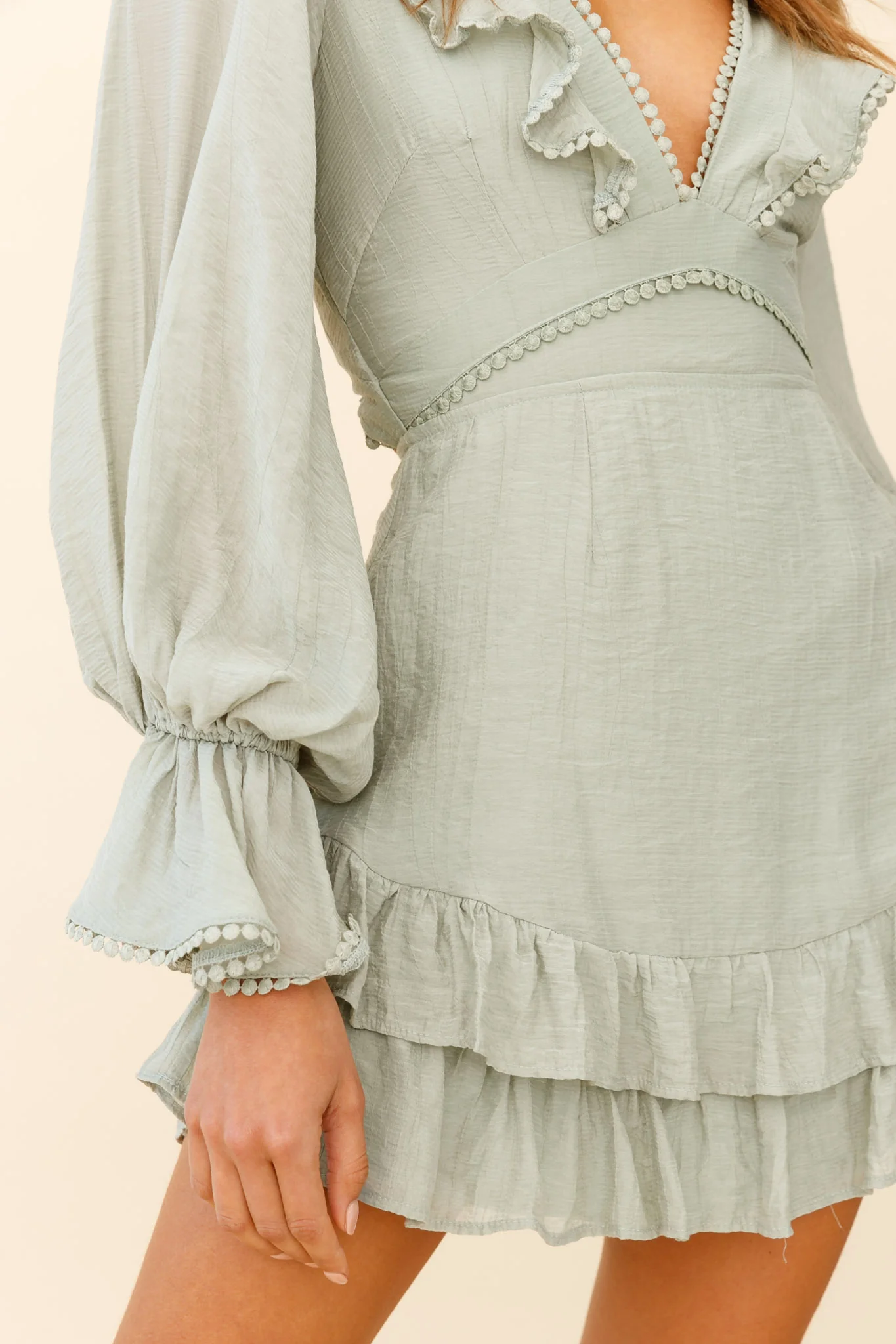 Jocelyn Long Sleeve Tied Cuff Frill Dress White