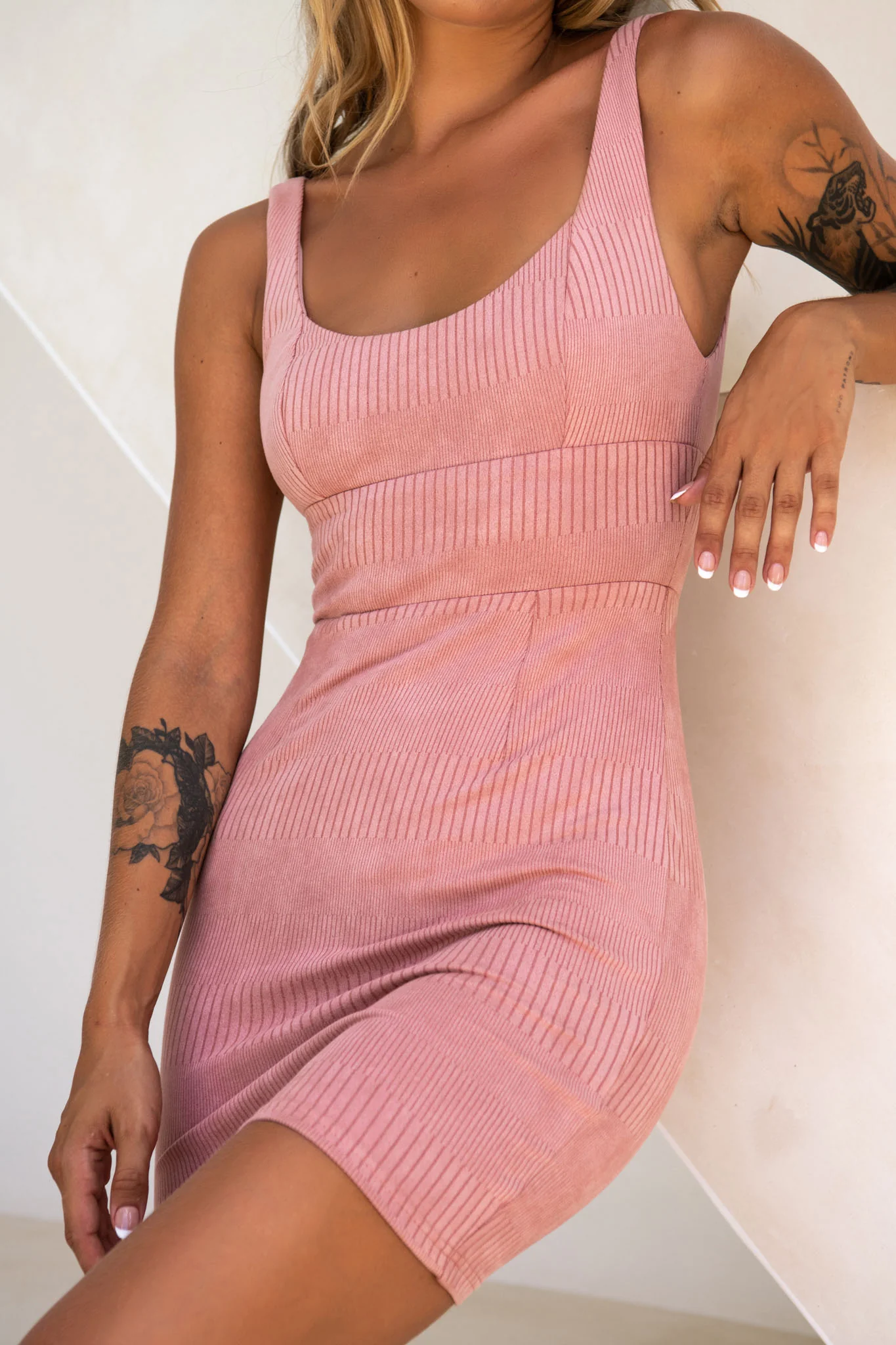 Workin' 9 to 5 Scoop Neck Pencil Dress Rose