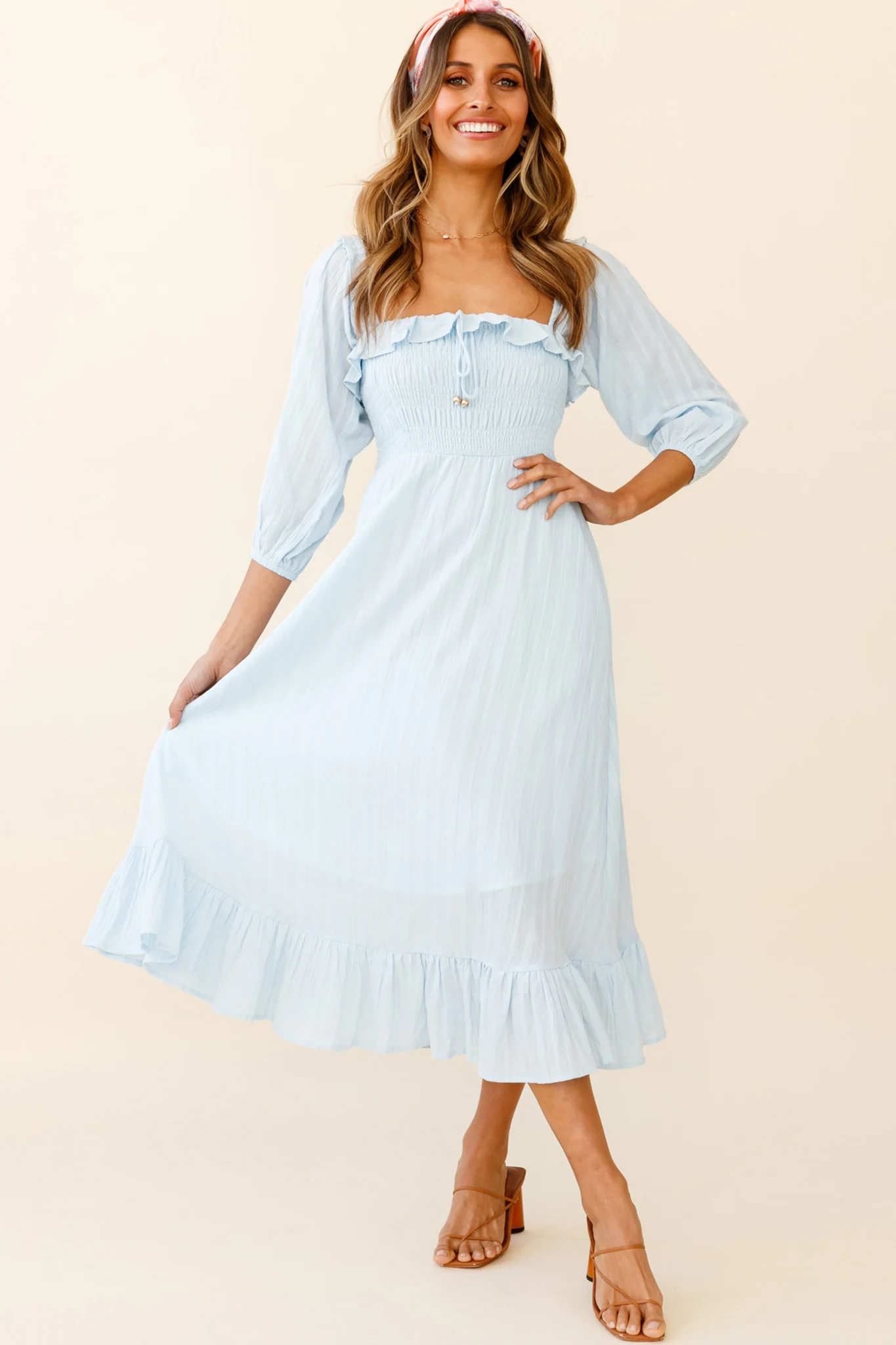 Laney Cutout Back Ruffle Trim Dress Hail Spot Texture Baby Blue