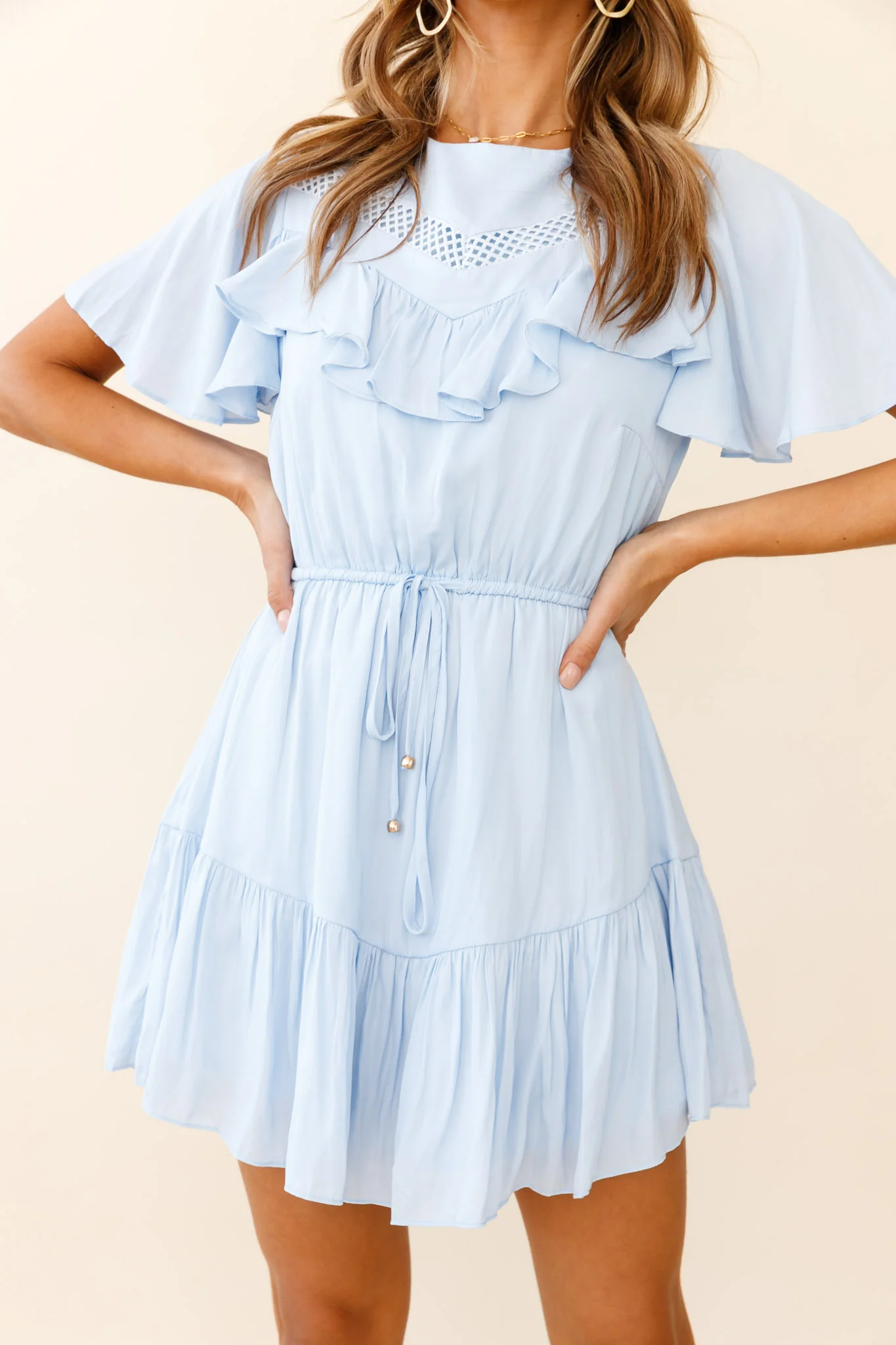 Olga Tiered Frill Detail Waist Tie Dress Baby Blue