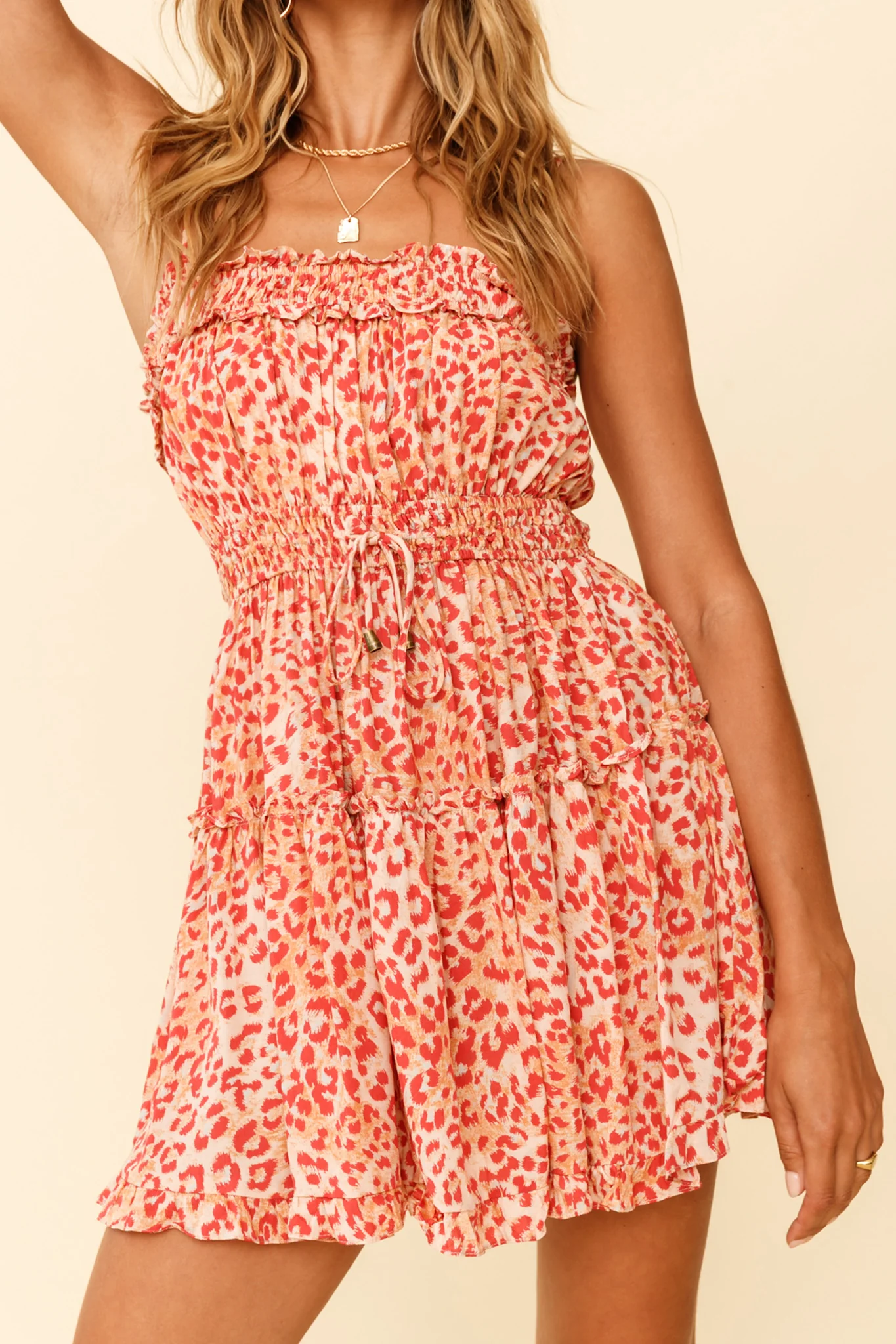 Weekend Escape Cami Strap Drawstring Dress Animal Print Orange