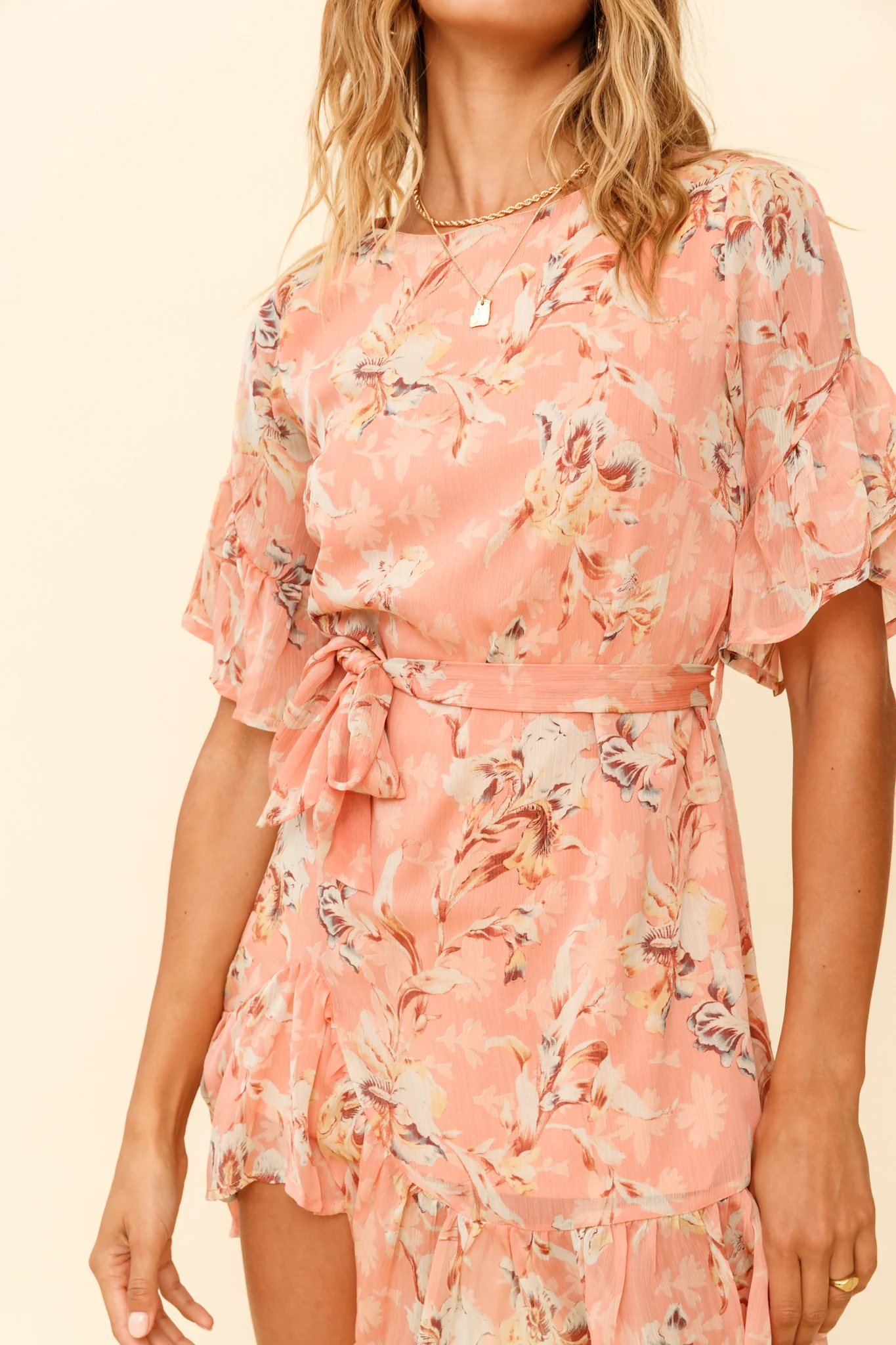 Azealia Ruffle Hem Dress Orchid Print Rose