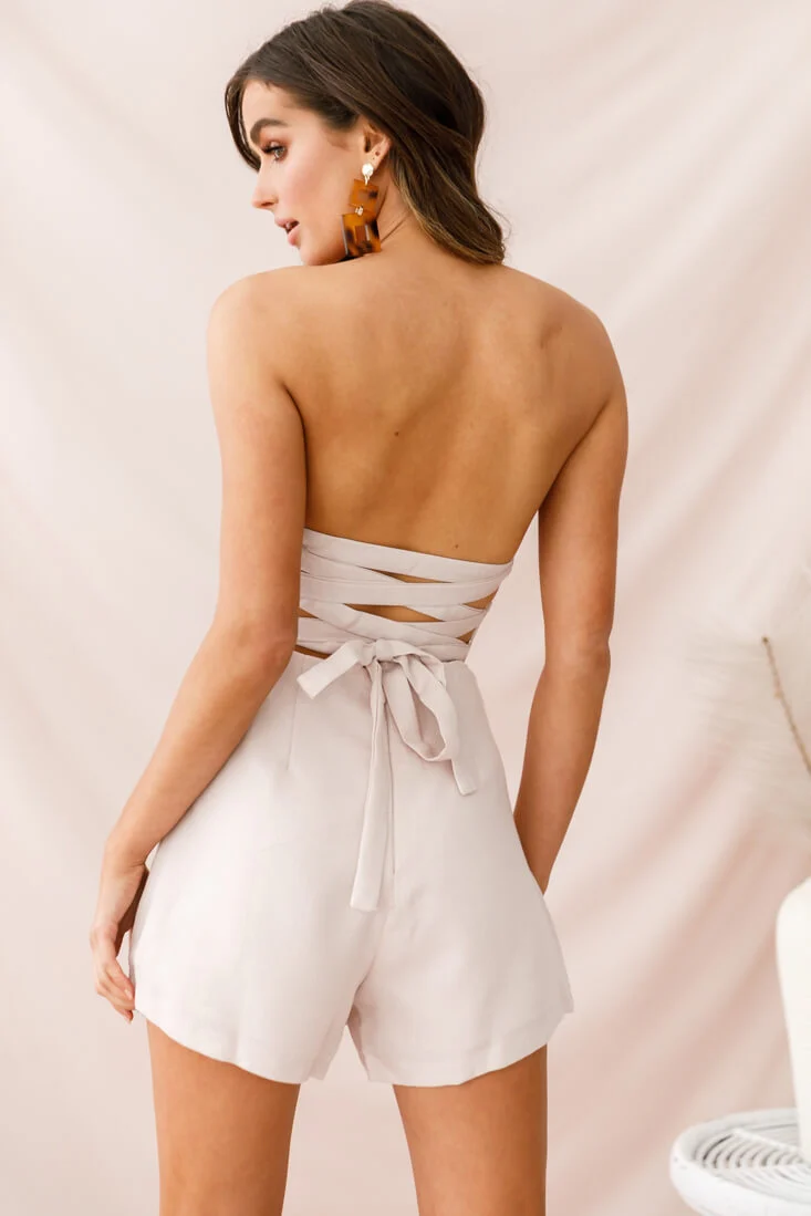 Louisa Elasticated Waist Ruffle Hem Romper Beige