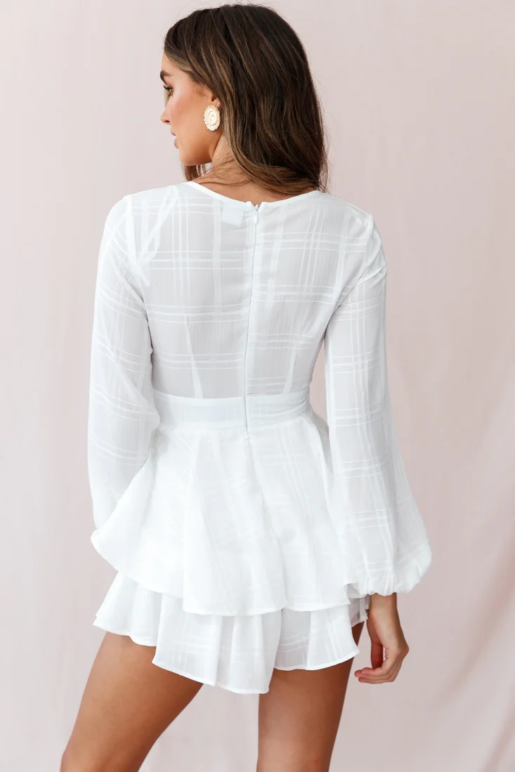 Mimi Three-Quarter Sleeve Drawstring Romper White