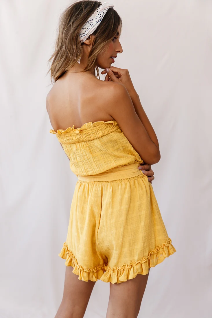 Stephy Frill-Trimmed Elasticated Strapless Romper Yellow