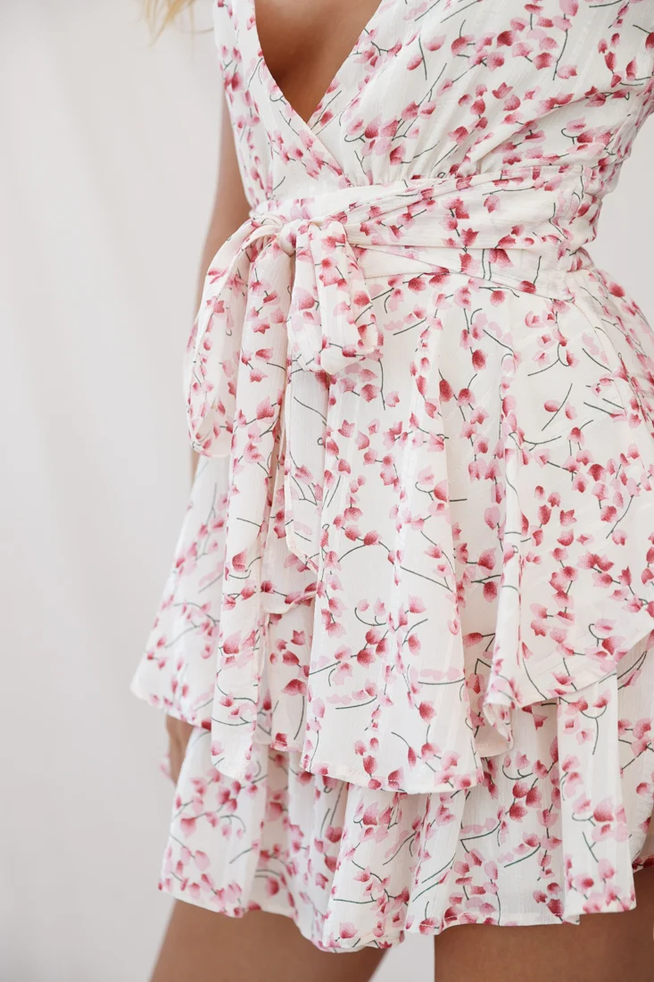 Alexandria Square Neckline Tie Back Romper Pink Floral Print