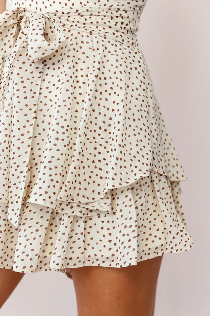 Maddox Fit & Flare Cami Strap Romper Speckle Print Beige