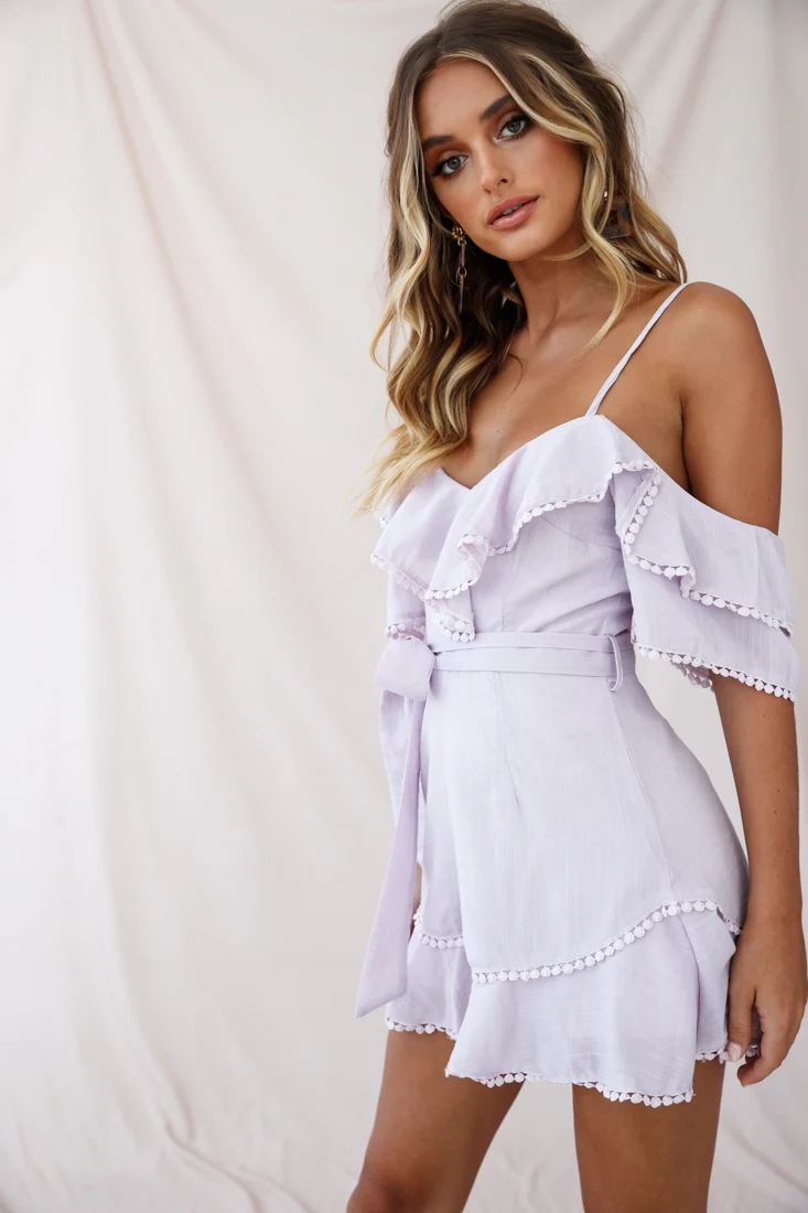Innocence Lace Ruffle Strap Romper Blush