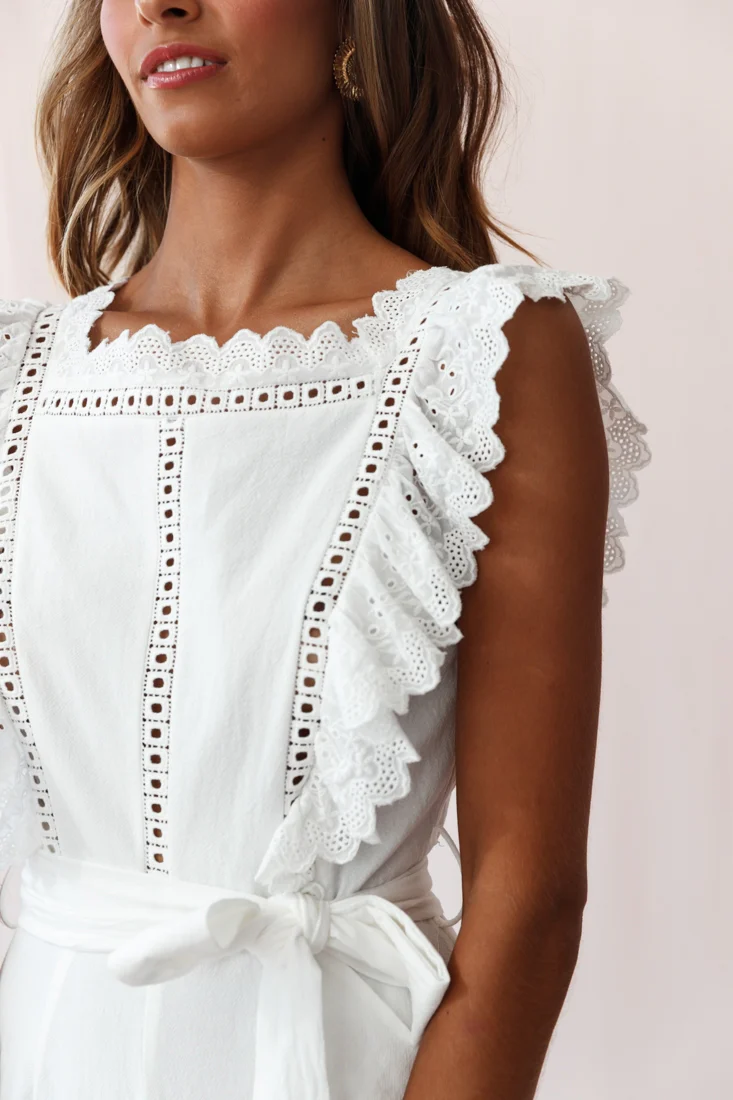 Virginia Ruffle Strap Eyelet Embroidery Romper White