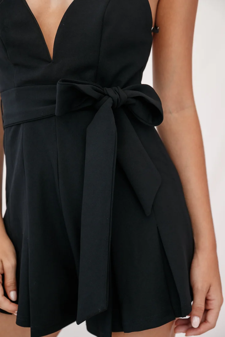 Rivera Tie-Knot Bell Sleeve Romper Black