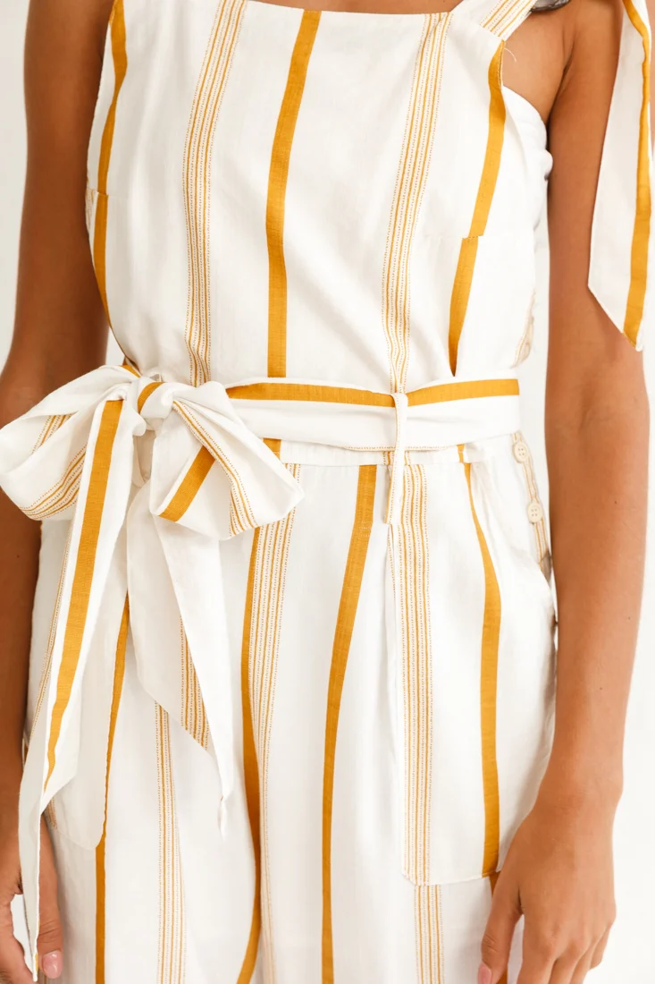 Fresno Straight Leg Pinafore Jumpsuit Stripe Print Mustard