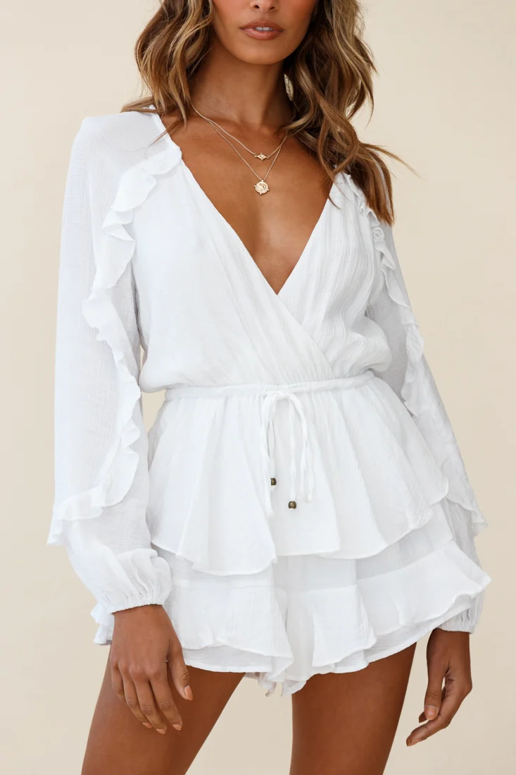 Adrienne Ruffle Shoulder Tie-Up Back Romper White