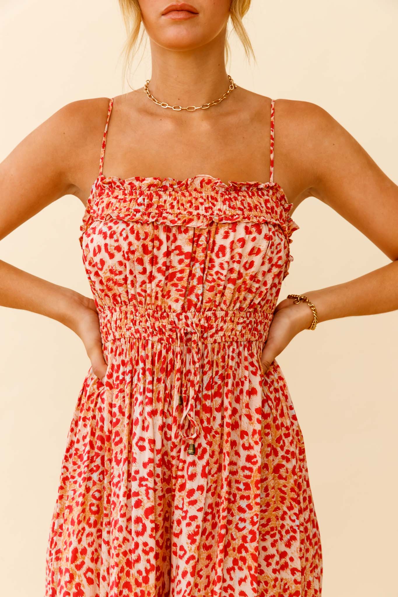 Weekend Escape Cami Strap Drawstring Jumpsuit Animal Print Orange