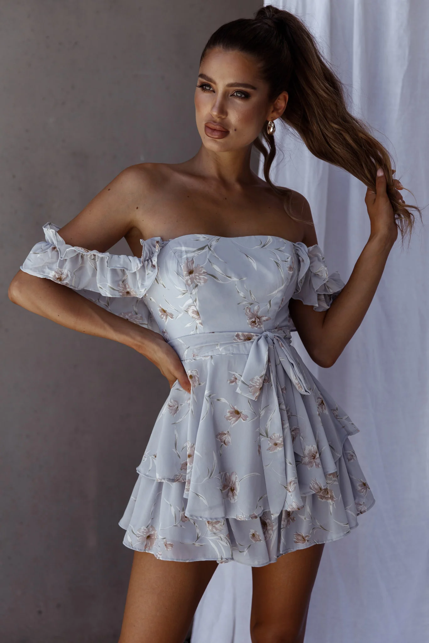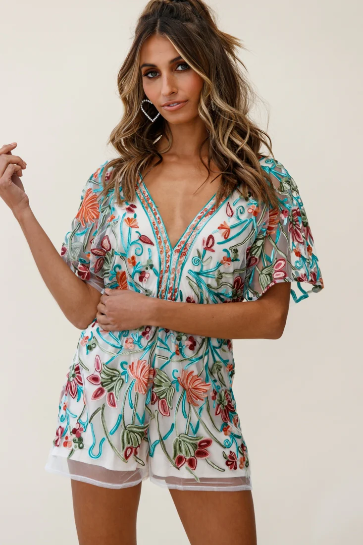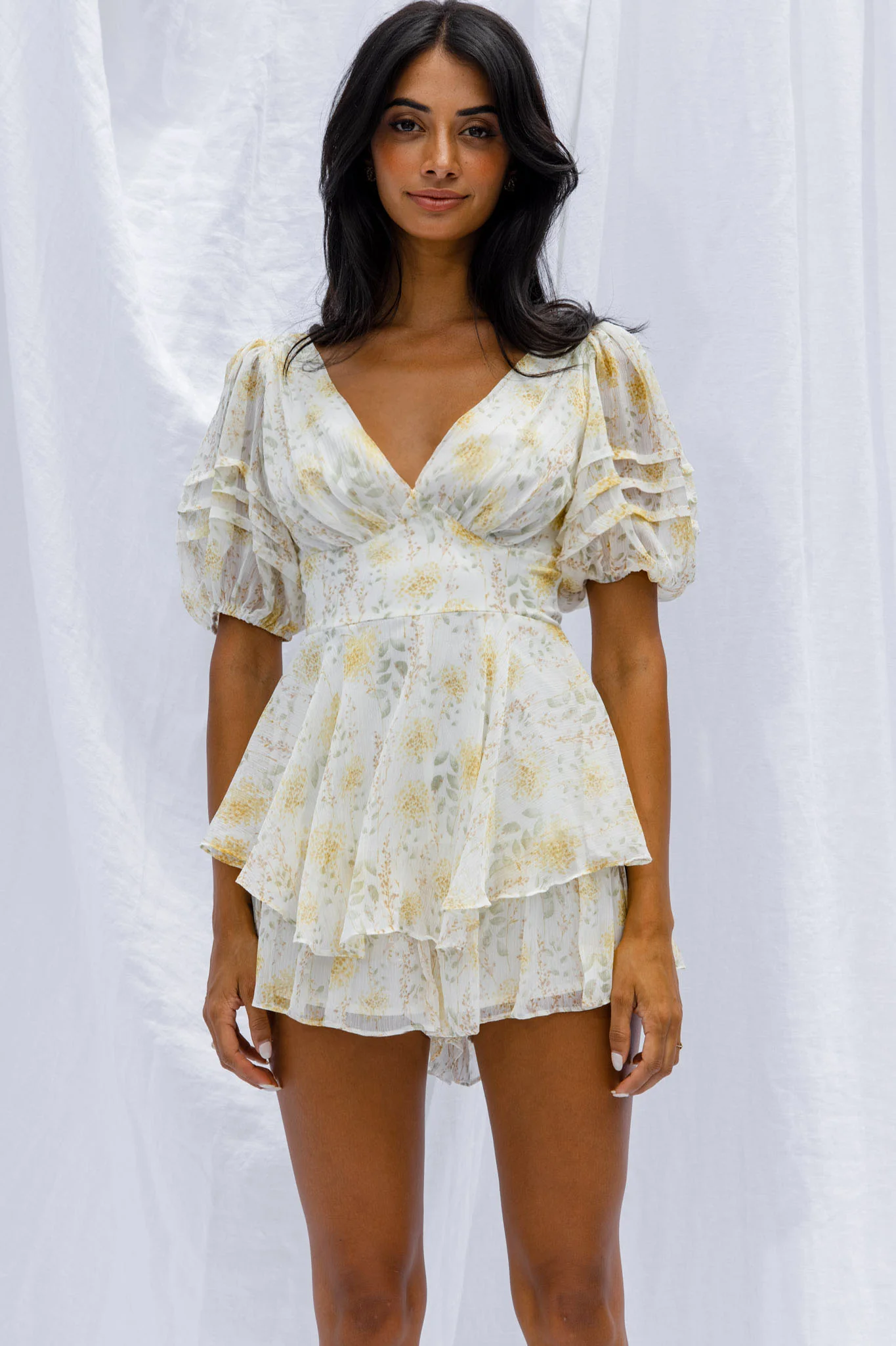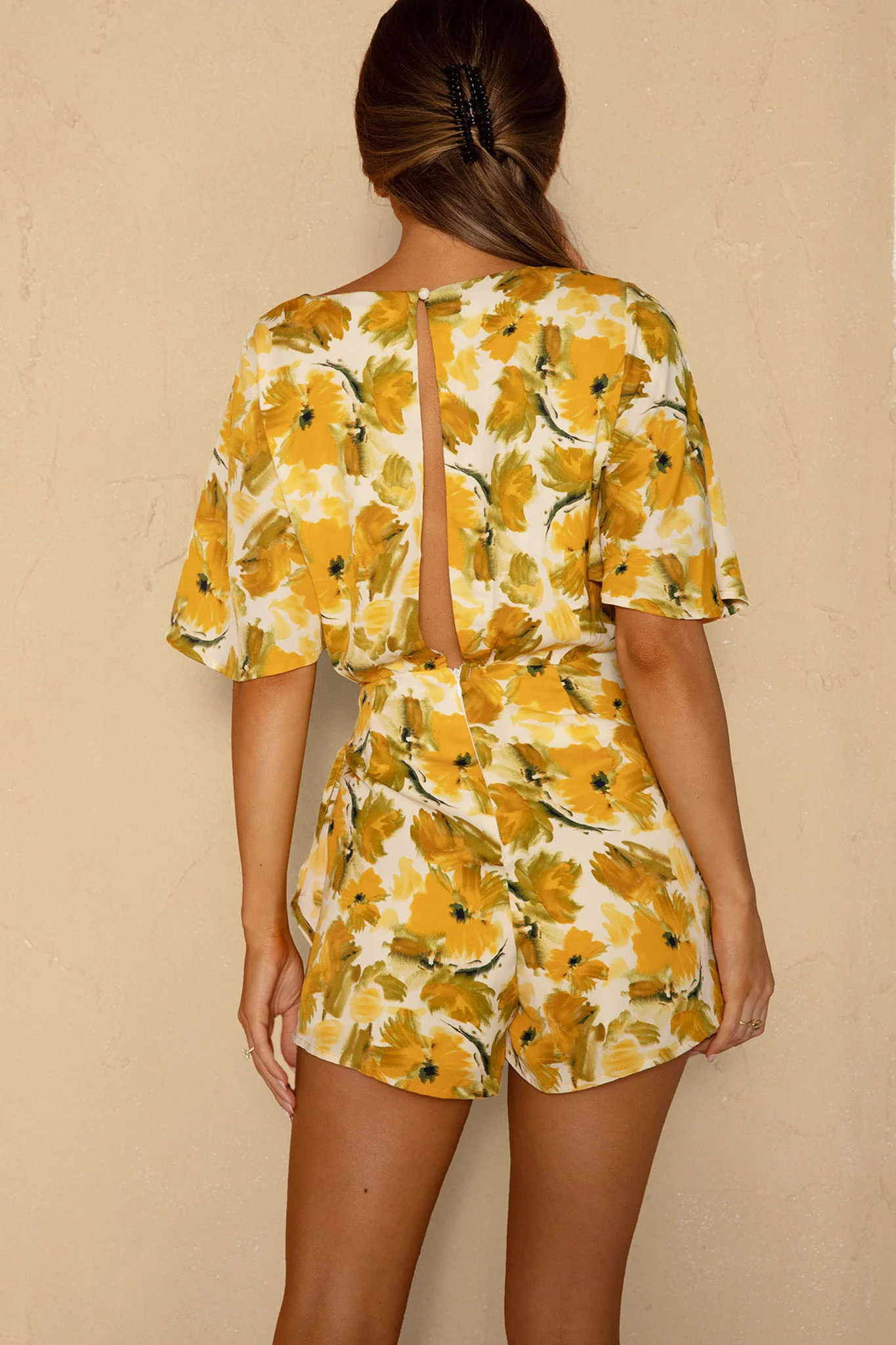 Revel Ruffle Trim Tied Back Romper Floral Yellow