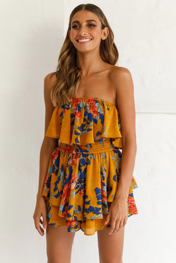 Skylar Dressy Tube Top Romper Yellow Mustard