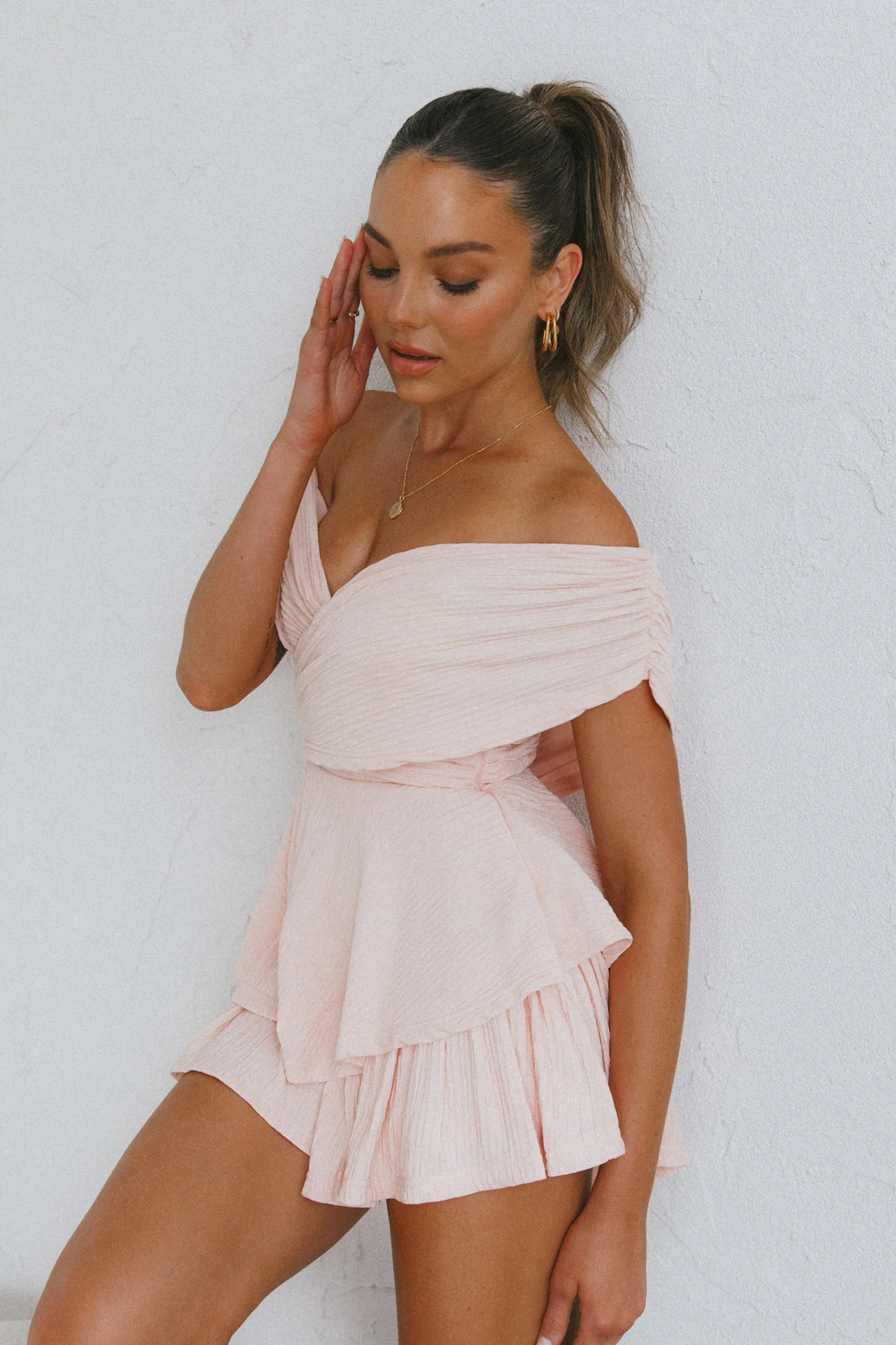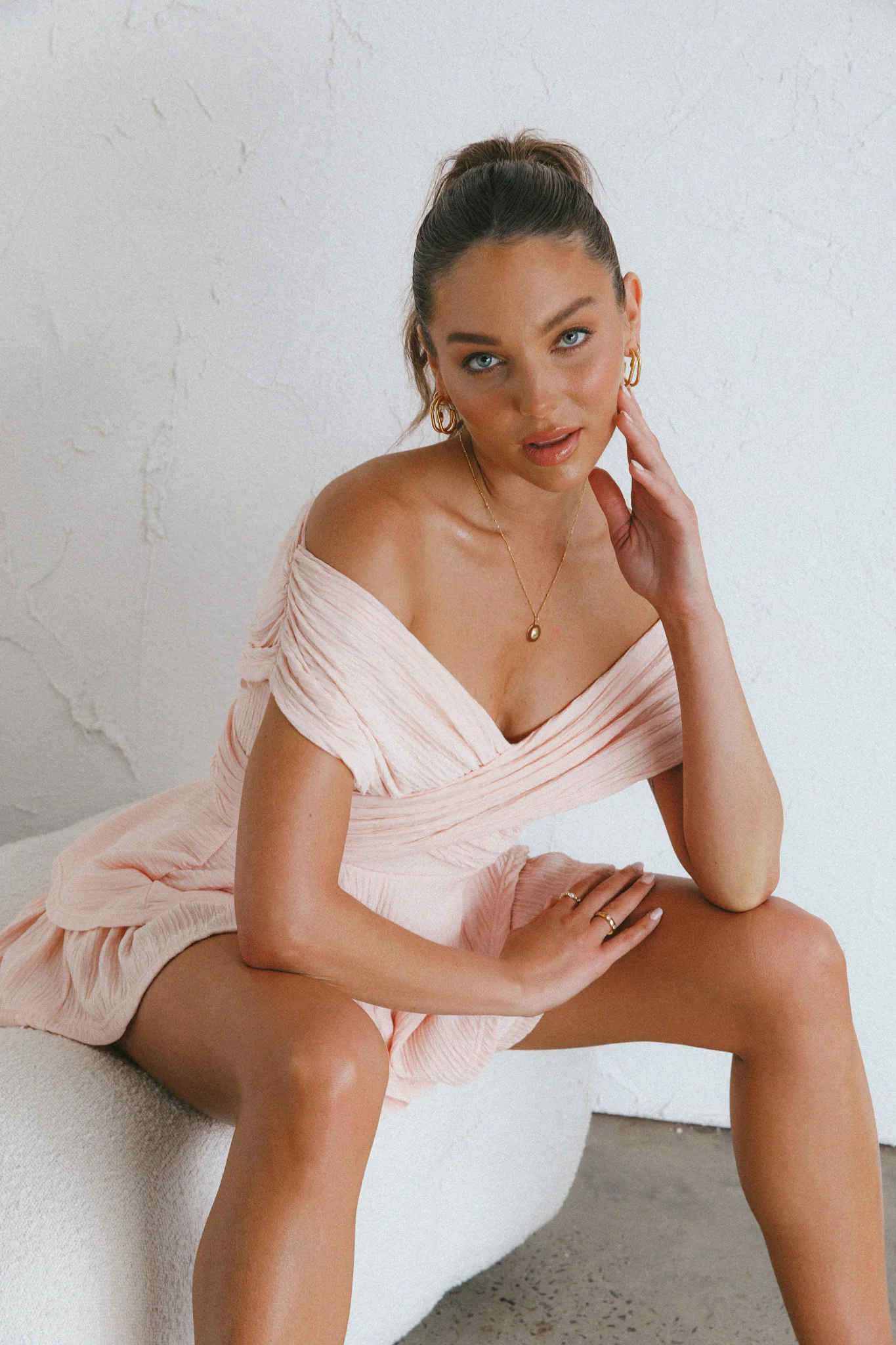Amris Off-Shoulder Long Sleeve Knit Romper Rose