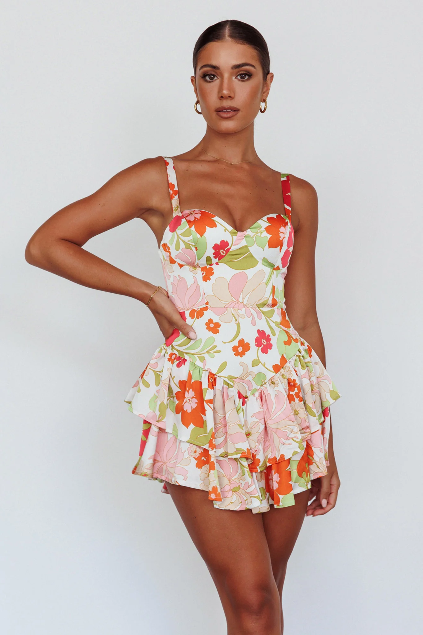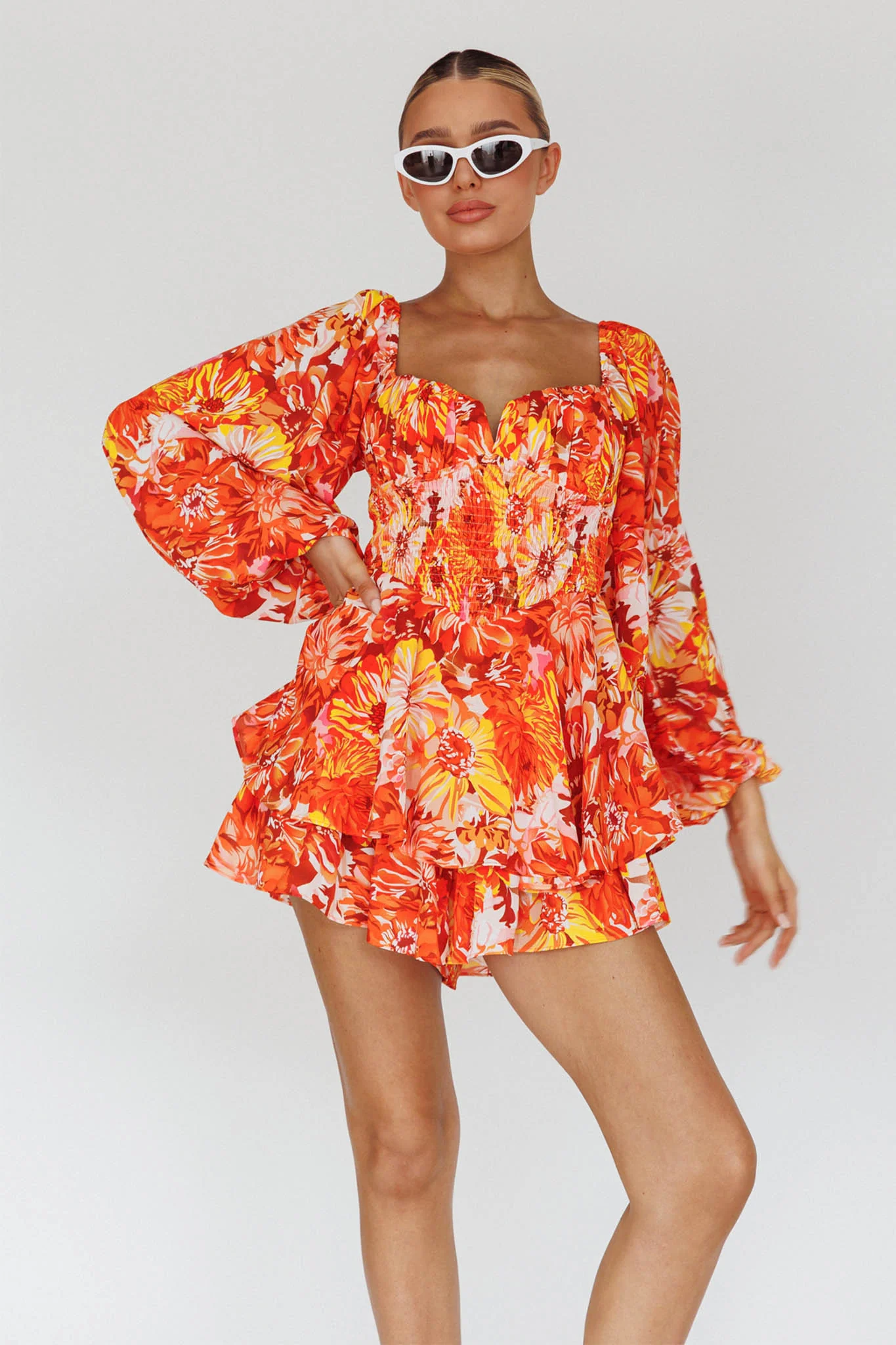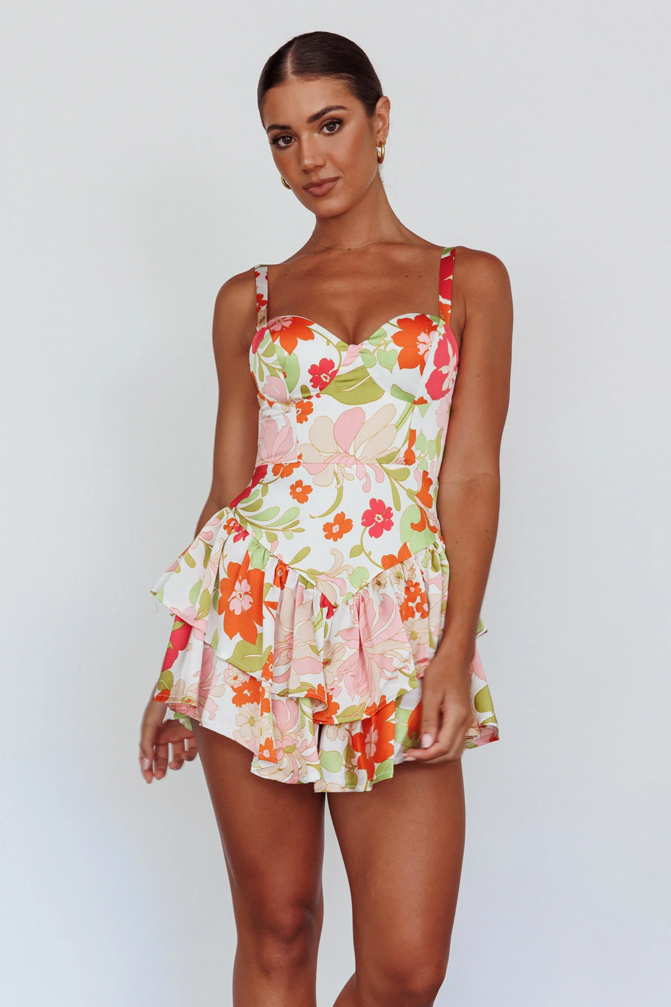 Keep Dreaming Puff Sleeve Frill Romper Floral Green