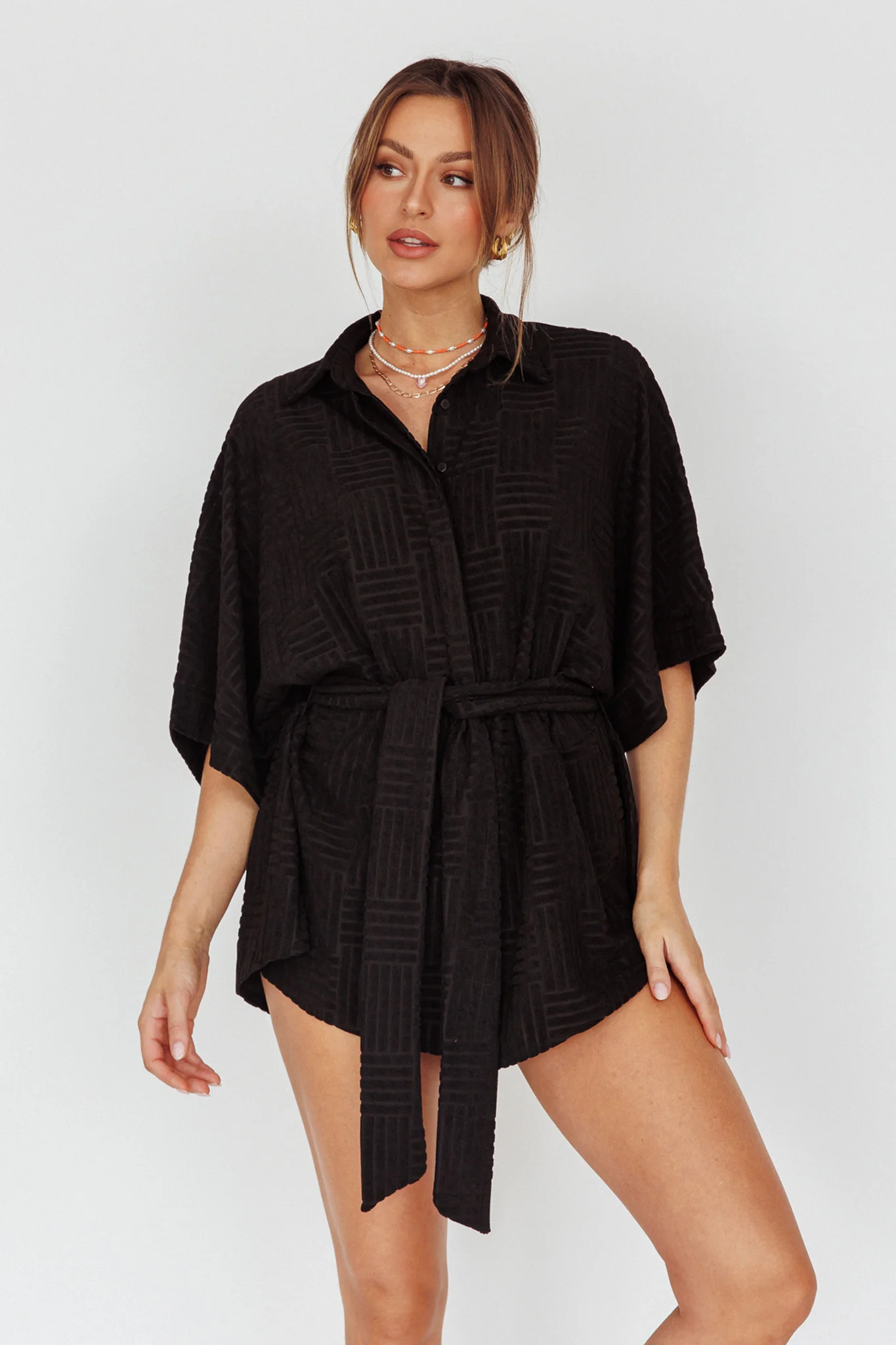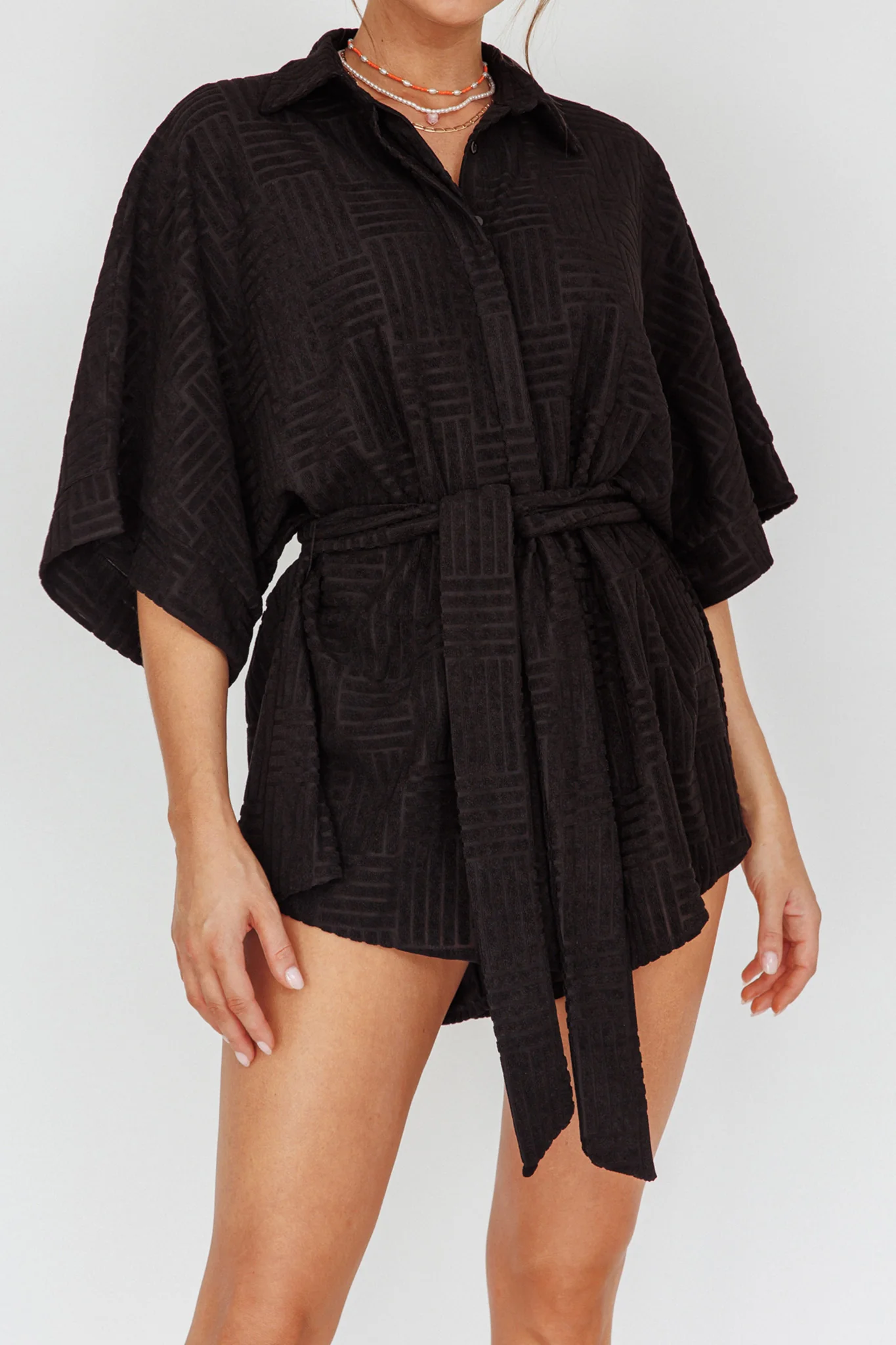 Daytona Beach Long Sleeve Shirt Romper Leaves Brown