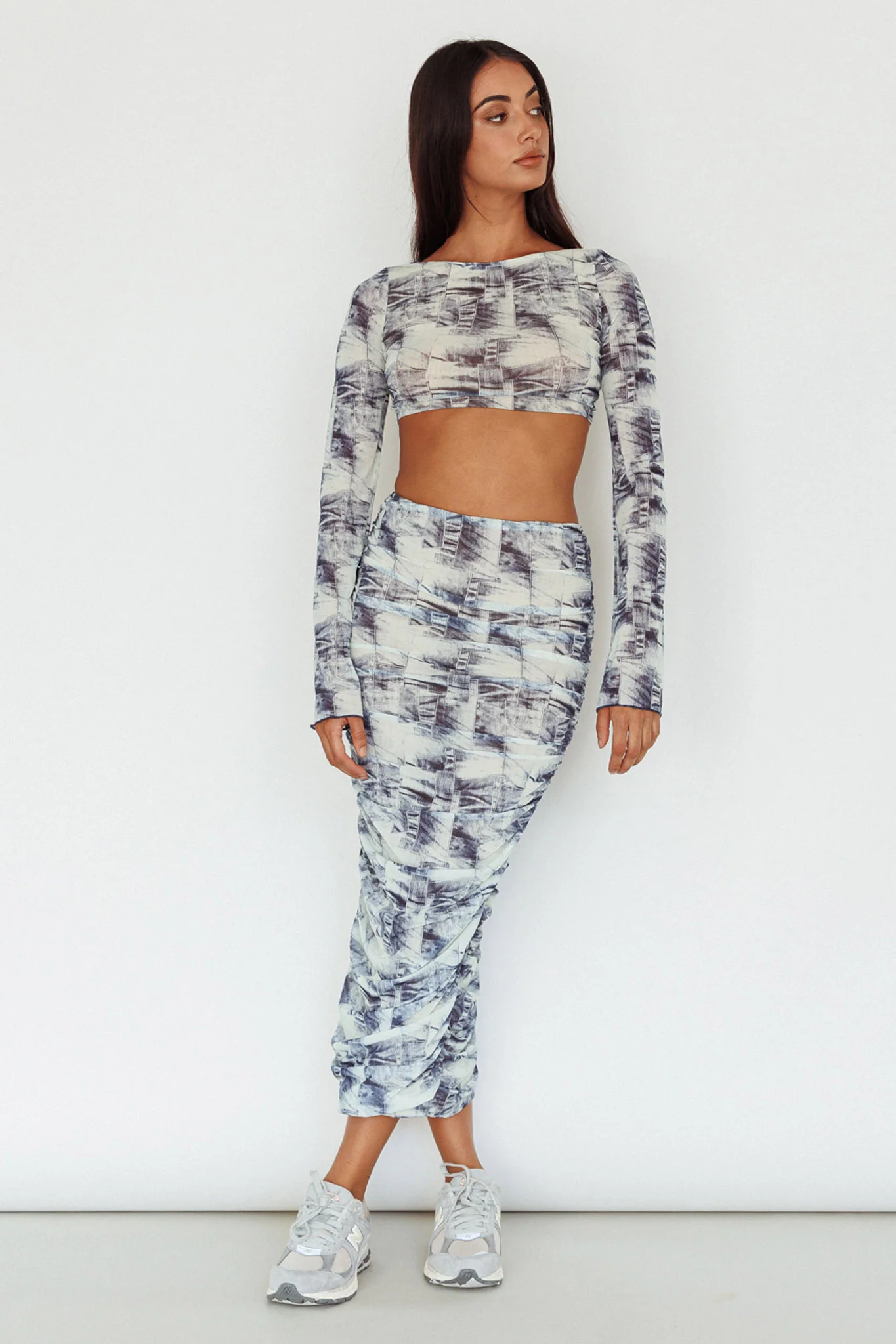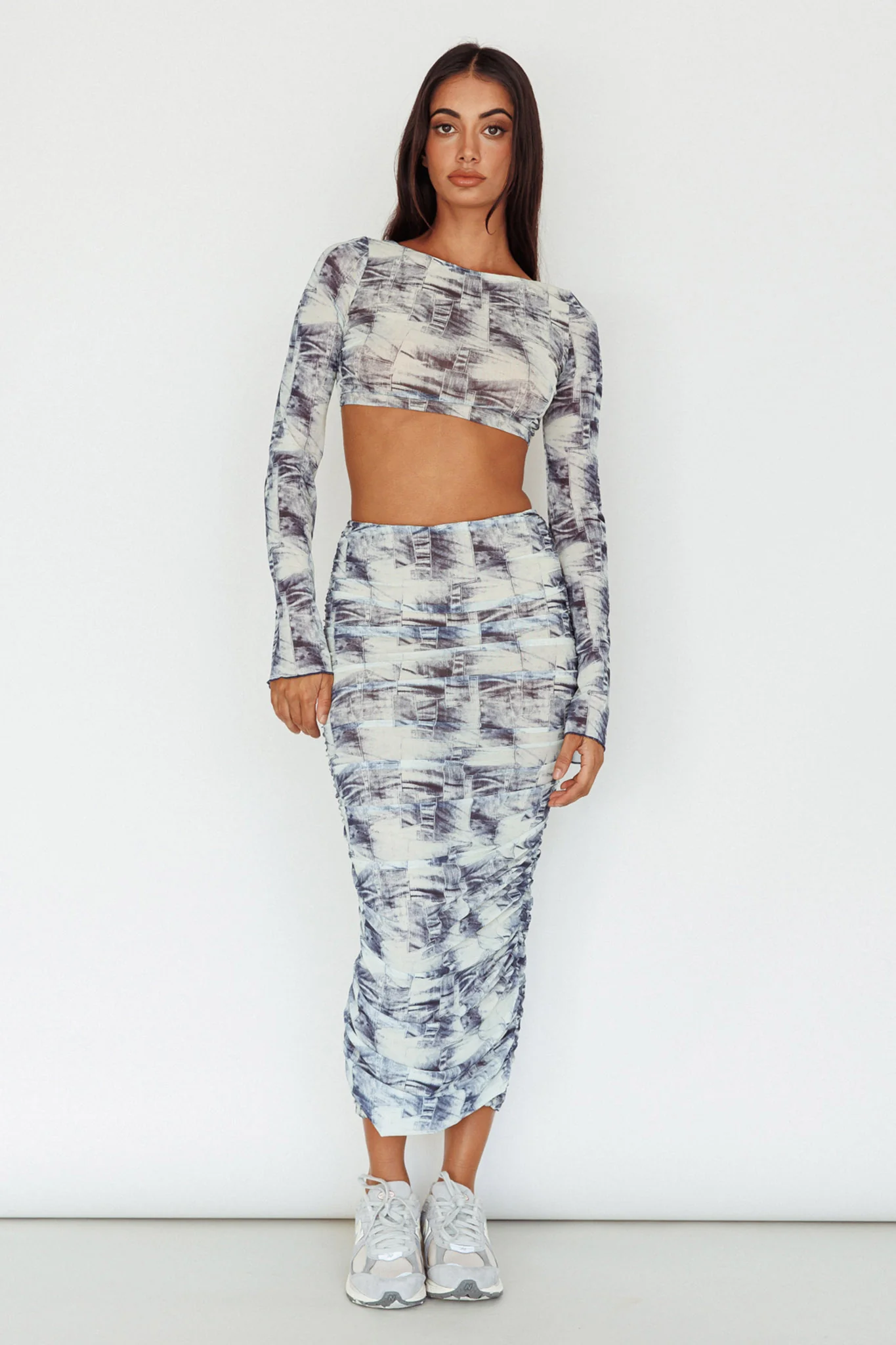 Blue Moons Ruched Midi Skirt Indigo Denim