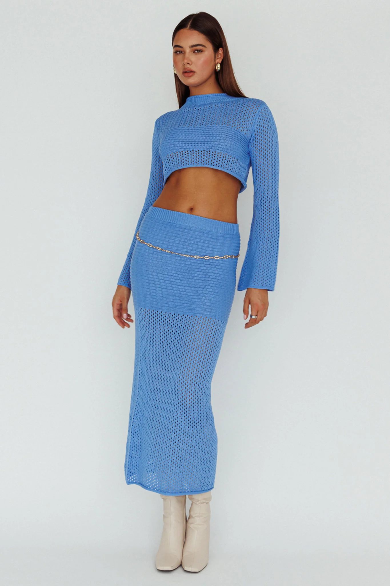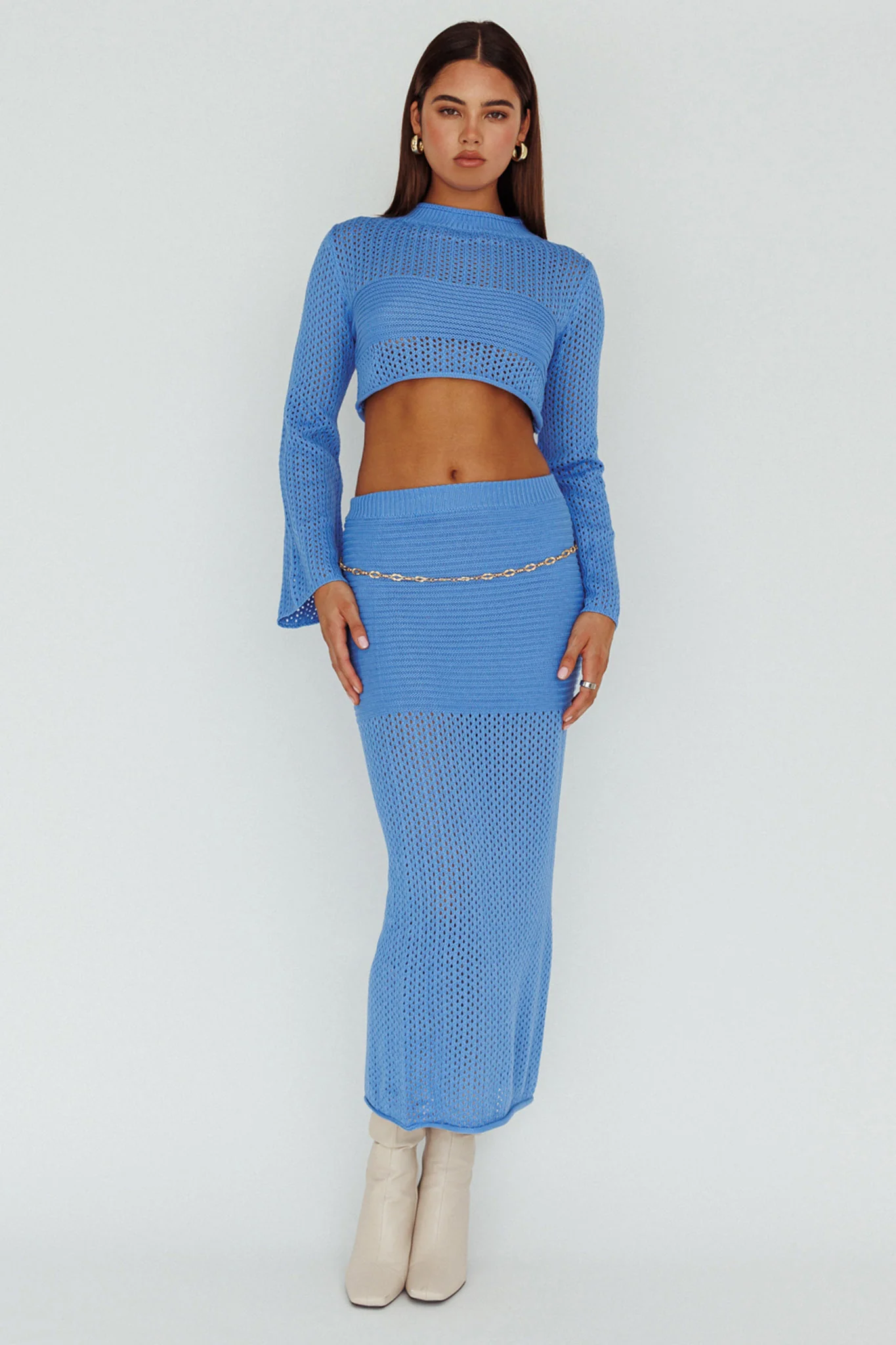 Jasmine Organza Mesh Elasticated Waist Midi Skirt Blue
