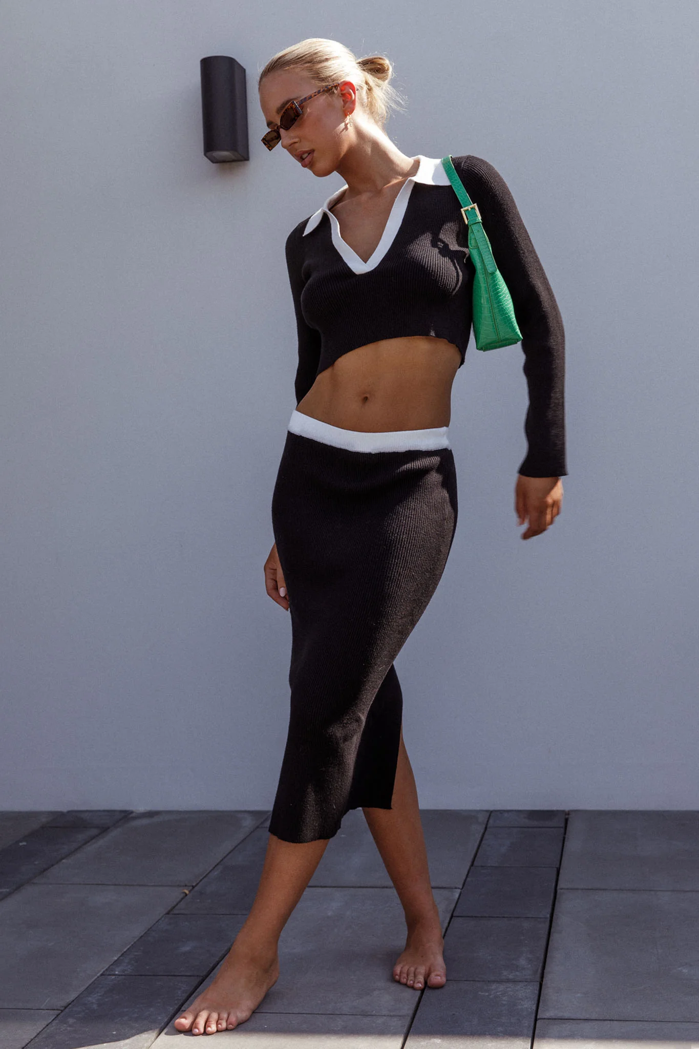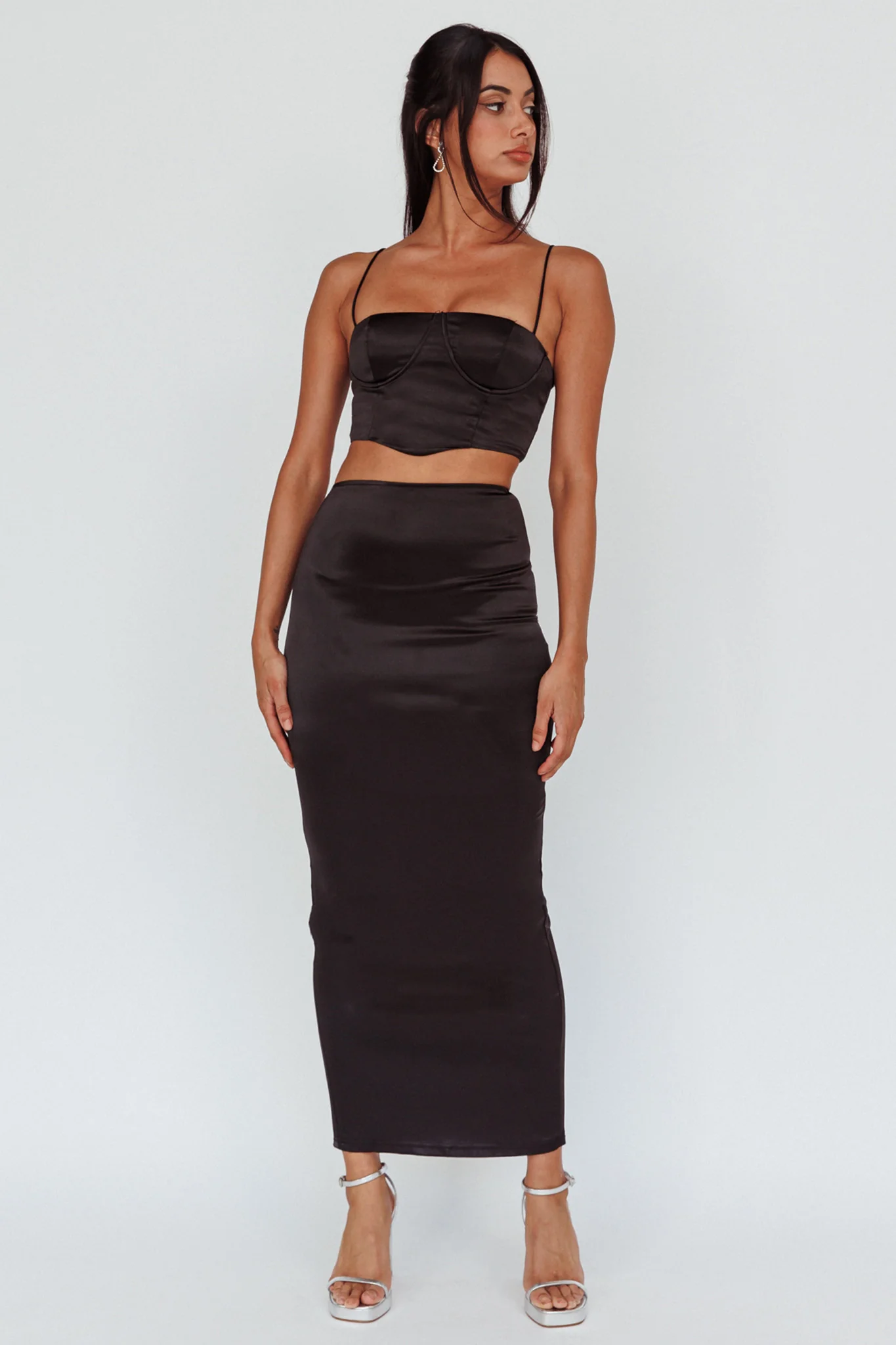 Jasmine Organza Mesh Elasticated Waist Midi Skirt Black