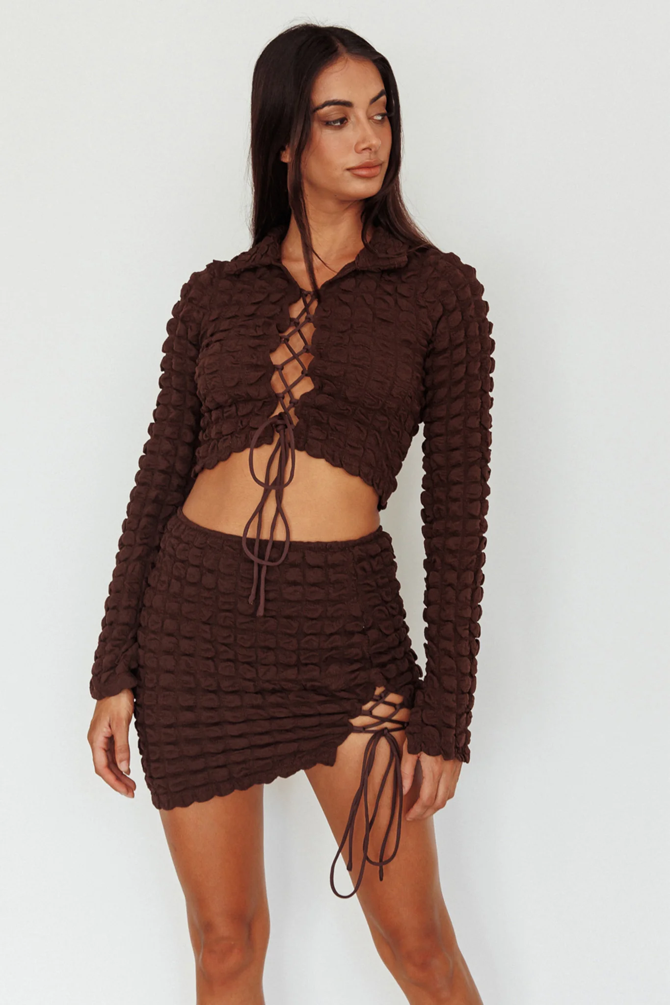 Josseline Lace-Up Detail Mini Skirt Chocolate