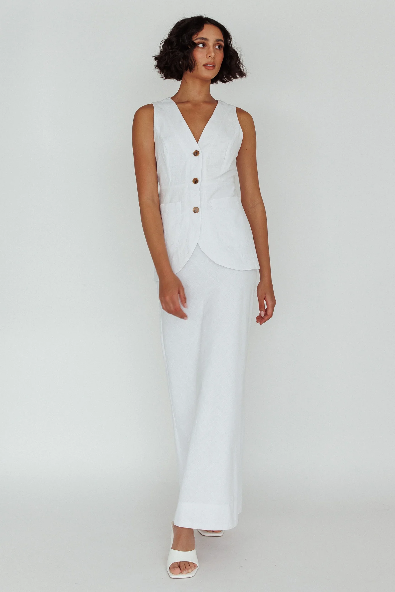 Angelica Side Button-Up Midi Skirt White